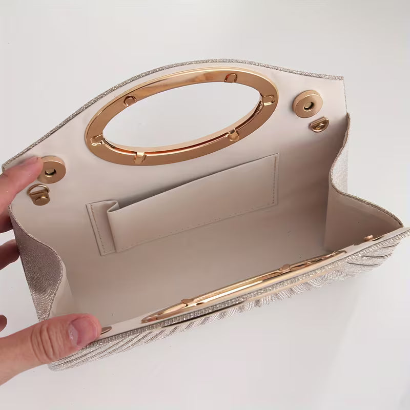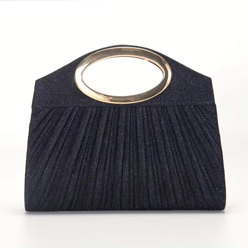 Elegant Navy Glitter Evening Clutch with Metal Round Ring Handle