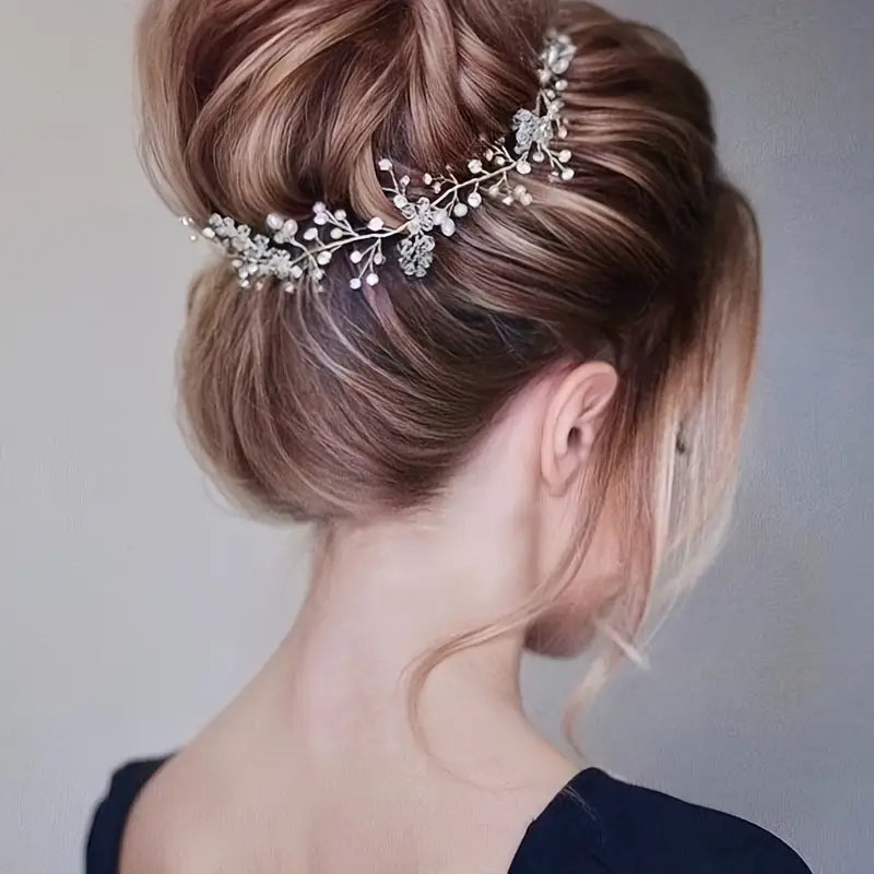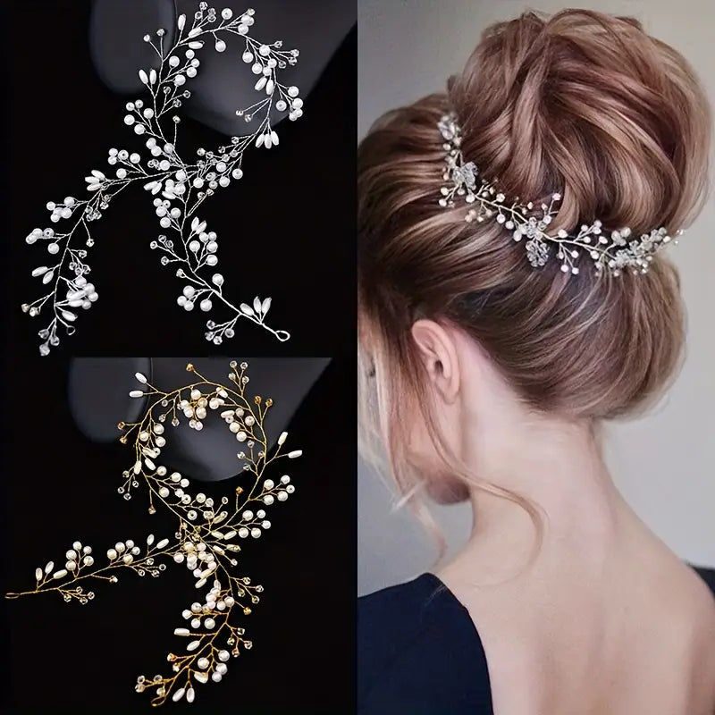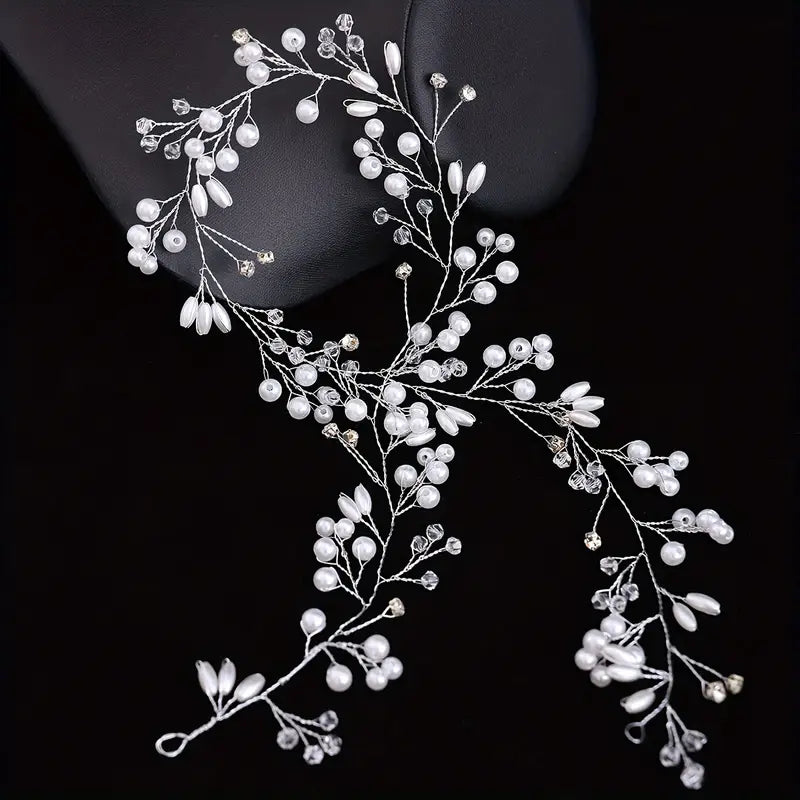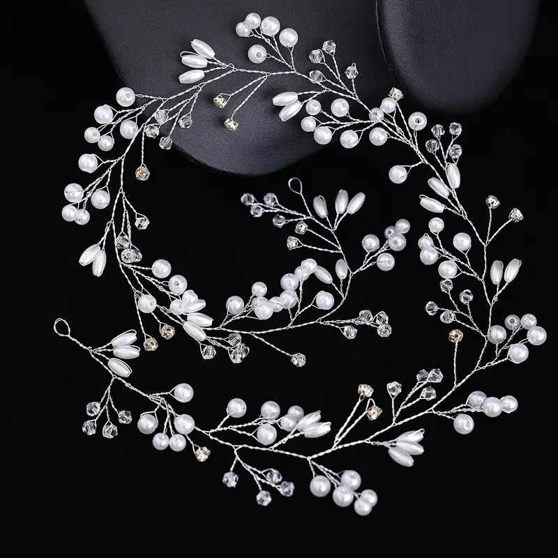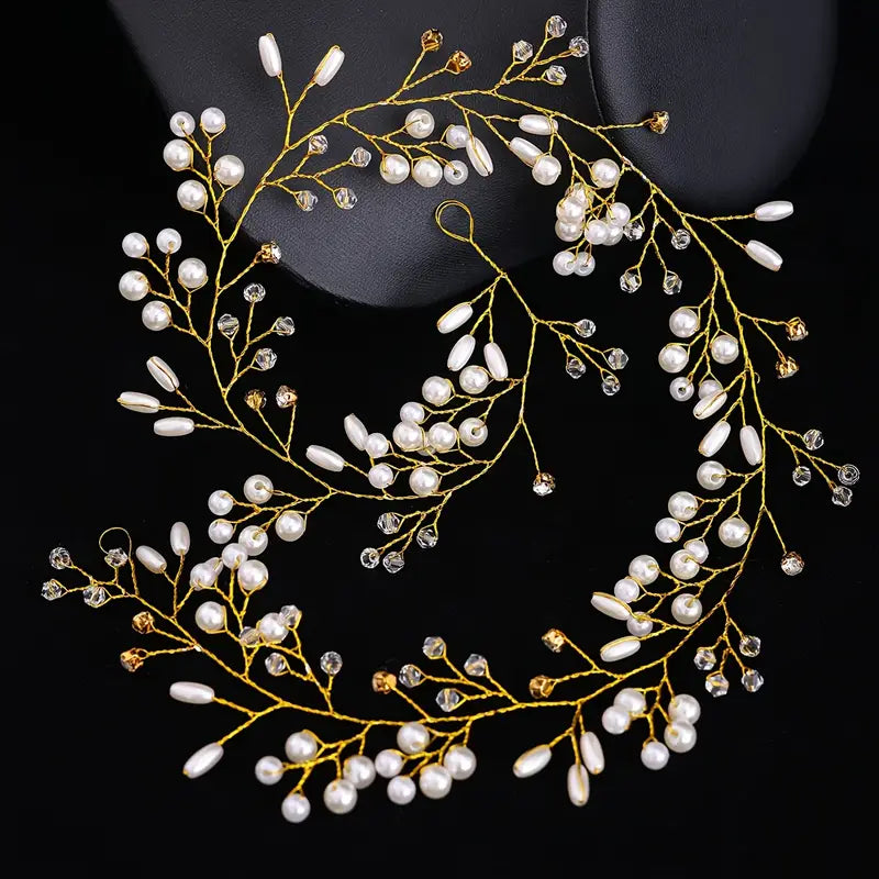 Faux Pearl floral headband/belt Vine weave