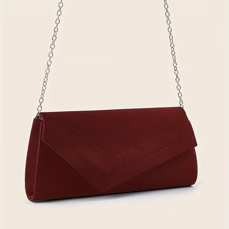 Evening Clutch Bag with Detachable Chain Strap Fabric Lining, Solid Color Elegant Evening & Formal Handbag for Parties, Weddings, Galas, Clutch Purse, Wedding Accessory, Sophisticated Design, Smooth Texture