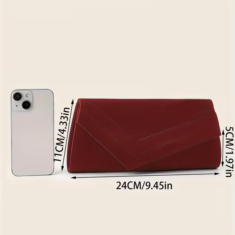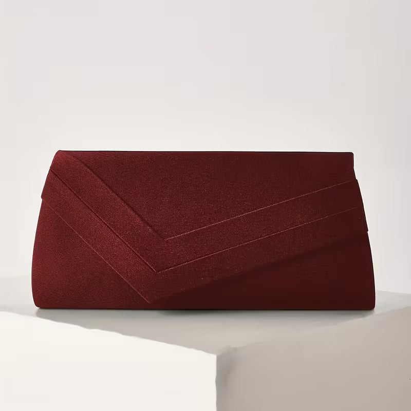 Elegant Crimson Red Irregular Envelope Clutch Handbag